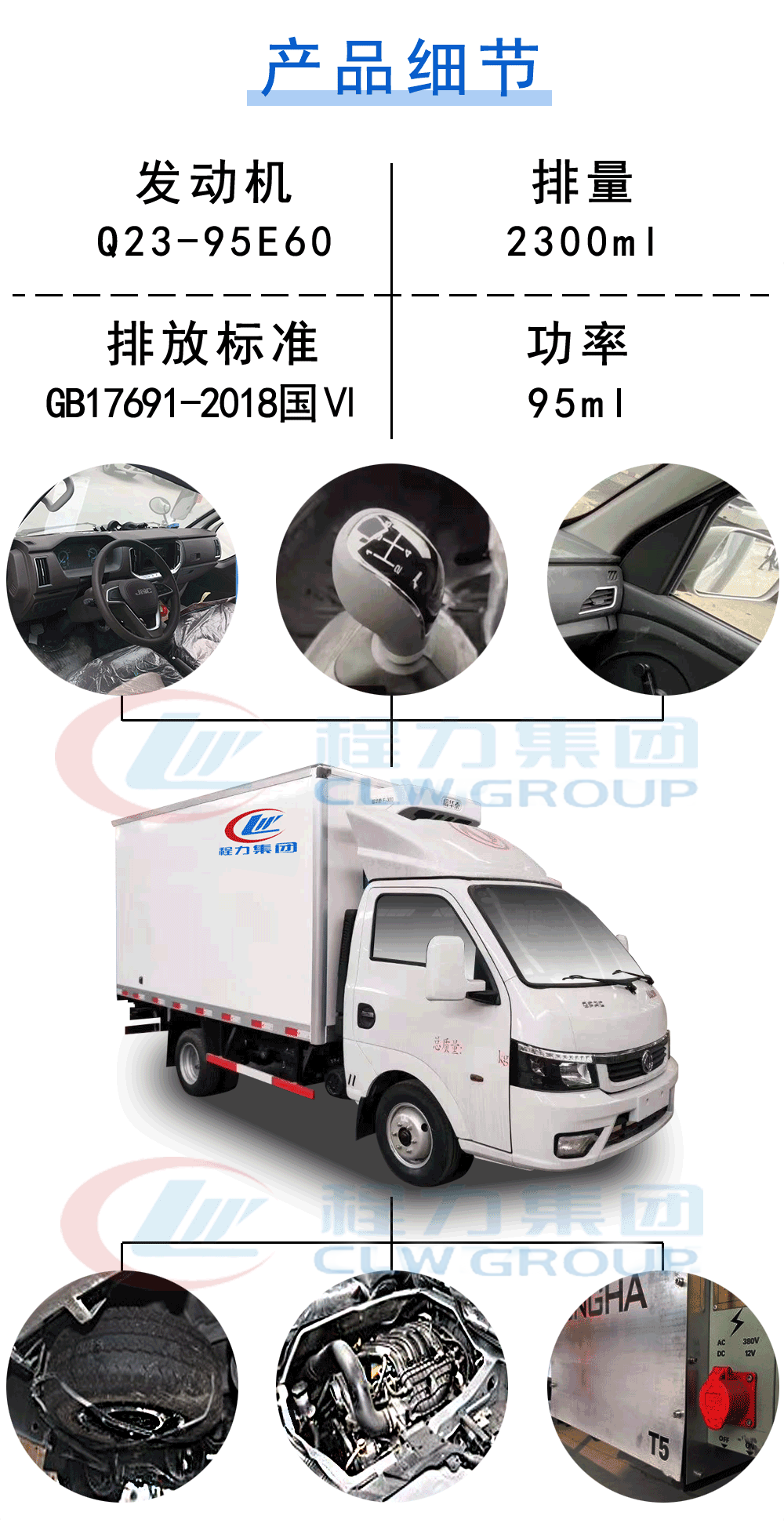 | 其他 | ABS型號(hào)/廠家:APG3550500A/浙江亞太機(jī)電股份有限公司,側(cè)面及后下部防護(hù)裝置材料為Q235,與車(chē)架采用螺栓連接.后下部防護(hù)裝置斷面尺寸(mm):100×50,離地高度:480mm,Q23-95E60發(fā)動(dòng)機(jī)的油耗值為11.3,車(chē)廂頂部封閉,不可開(kāi)啟.隨底盤(pán)選裝后視鏡,外形尺寸長(zhǎng)-軸距-前后懸的對(duì)應(yīng)關(guān)系:5430-2800-1181/1449,5730-3000-1181/1549,5995-3200-1181/1614,可選裝單側(cè)門(mén)或雙側(cè)門(mén)及選裝導(dǎo)流罩,選裝內(nèi)置冷藏機(jī)組.可選裝功率相當(dāng)?shù)钠渌吞?hào)的制冷機(jī)組.選裝ABS廠家及型號(hào):襄陽(yáng)東風(fēng)隆誠(chéng)機(jī)械有限責(zé)任公司/ABS/ASR-12V-4S/4M. | ||
